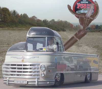 Rare photo of elektro-spif, apparently not a great success. In spite of weighing in excess of 17 tonnes, it could and would power a small town for several days. Sadly, The Spiflicator factory wired this particular one incorrectly, causing it to attract all manner of scrap metal from miles around, as soon as they switched it on. Unfortunately, the driver neglected to turn this spif off before fleeing for his life, and so it is somewhere in the middle of a huge ball of rusty scrap to this very day.